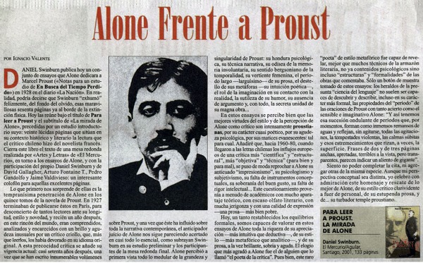 Autores chilenos - Swinburn, Daniel - Para leer a Proust. La mirada de Alone