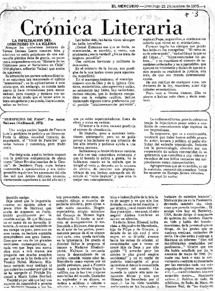 Historia de los cristianos para el socialismo en Chile - Malraux, André - Donoso Loero, Teresa - Huéspedes de paso - Autores chilenos