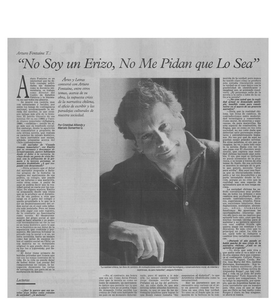 No soy un erizo, no me pidan que lo sea": [entrevistas] [artículo] Cristóbal Alliende <y> Marcelo Somarriva Q.