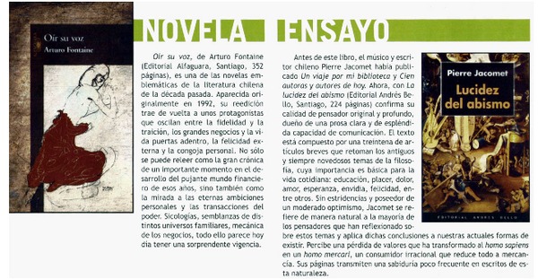 Autores chilenos - Jacomet Ollivet, Pierre - Fontaine Talavera, Arturo - Oír su voz - Lucidez del abismo