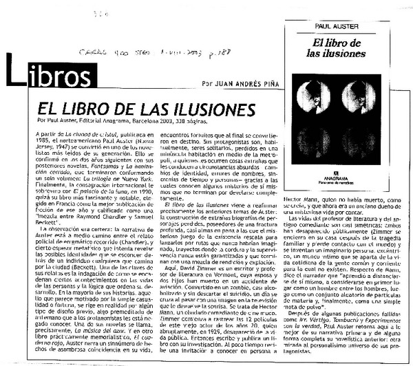 El Libro de las ilusiones [artículo] Juan Andrés Piña.