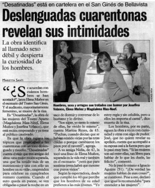 Deslenguadas cuarentonas revelan sus intimidades [artículo] Marietta Santí.