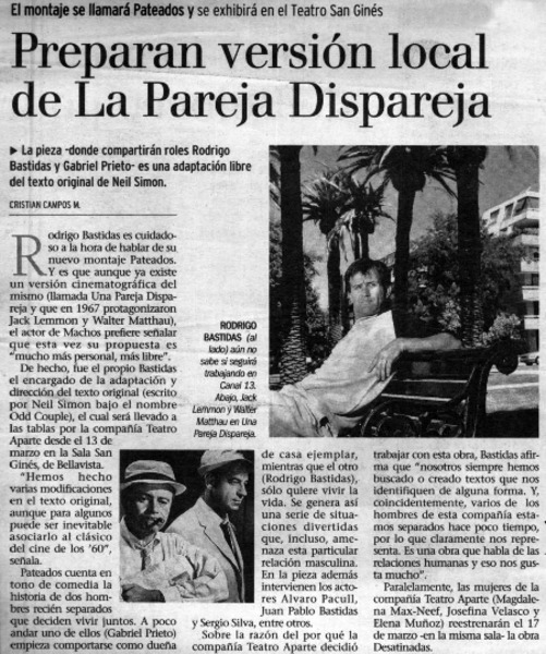 Autores chilenos - Autores estadounidenses - Bastidas, Rodrigo - Simon, Neil - Pareja dispareja - Pateados