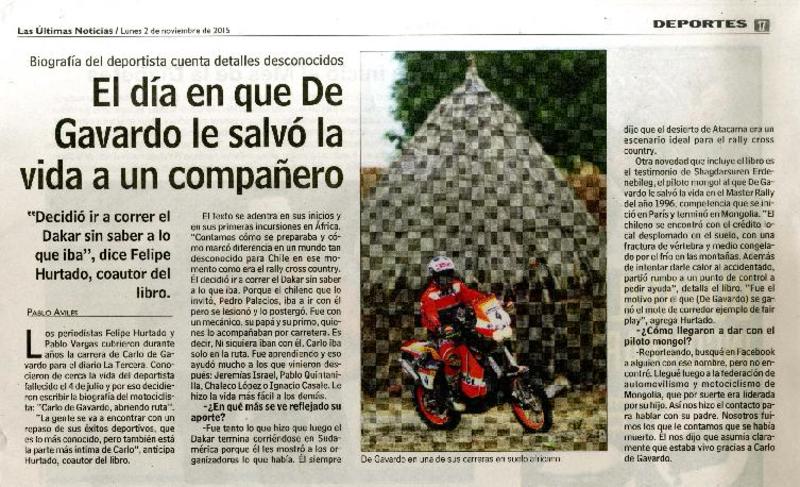 El día en que De Gavardo le salvó la vida a un compañero [entrevista] [artículo] Pablo Avilés.