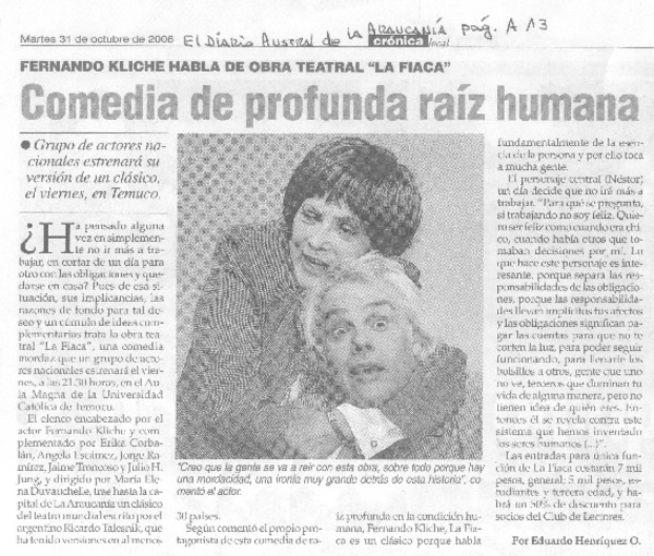 Comedia de profunda raíz humana [artículo]Eduardo Henríquez O.