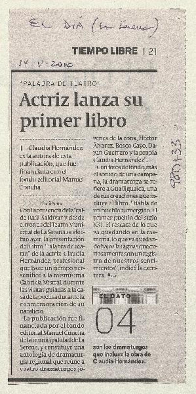 Autoras chilenas - Palabra de teatro - Hernández, Claudia