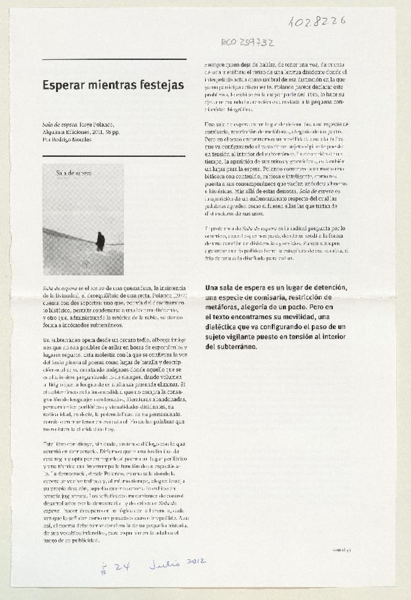 Esperar mientras festejas [artículo] Rodrigo Morales.