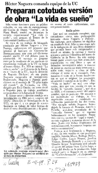 Preparan cototuda versión de obra "La vida es sueño" [artículo].