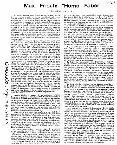 Max Frisch: "Homo Faber" [artículo] Ignacio Valente.