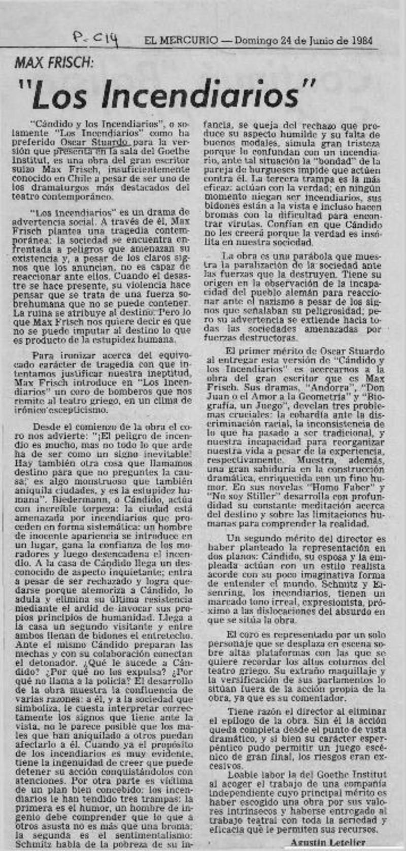 Autores chilenos - Autores suizos - Stuardo, Oscar - Frisch, Max - Cándido y los incendiarios - "Incendiarios"