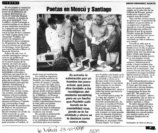 Poetas en Moscú y Santiago [artículo] Sergio Eduardo Fernández Aguayo.