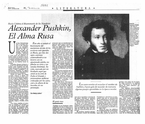 Alexander Pushkin, el alma rusa [artículo] Marily Lüders.