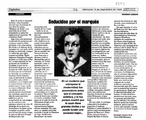 Sade: entre la virtud y el pecado [artículo] Claudio Aguilera.