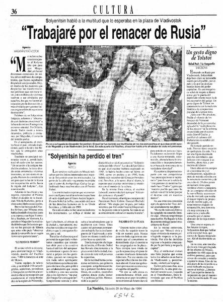 "Trabajaré por el renacer de Rusia" Solzhenitsyn habló a la multitud que lo esperaba en la plaza de Vladivostok [artículo] :