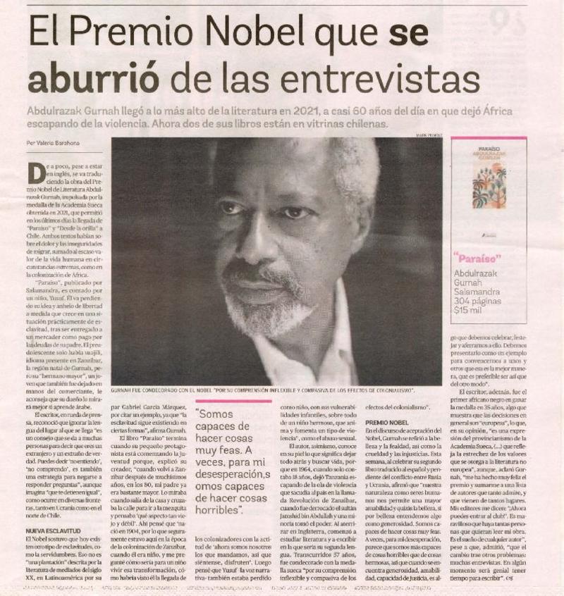 El Premio Nobel que se aburrió de las entrevistas [artículo] Por Valeria Barahona.