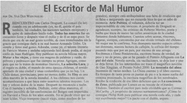 El escritor de mal humor [artículo] Van Der Weintraube.