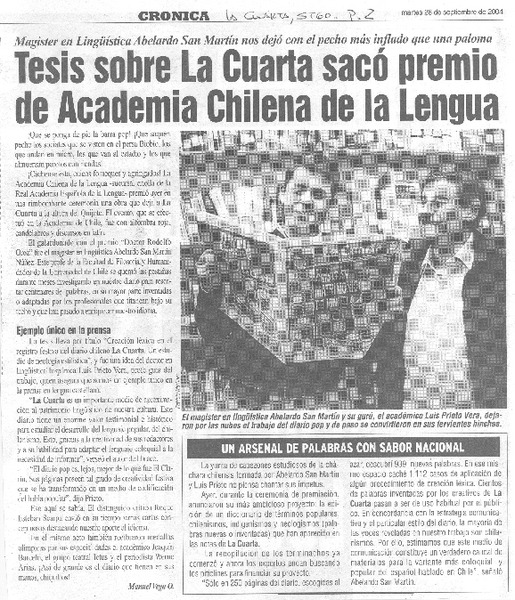 Comunicación del Premio "Dr. Rodolfo Oroz" a D. Abelardo San Martín [artículo] Felipe Alliende González.