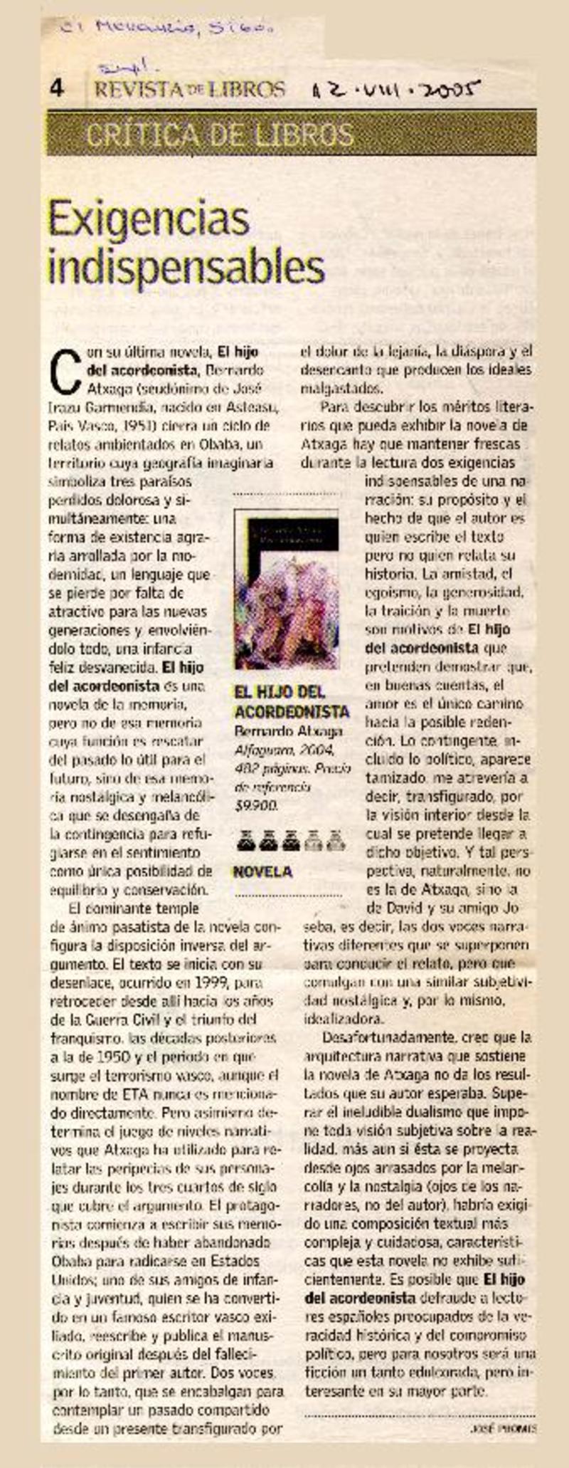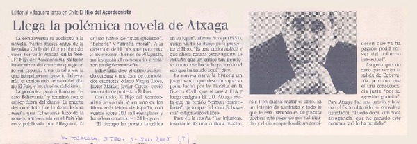Editorial Alfaguara lanza en Chile El hijo del acordeonista : llega la polémica novela de Atxaga [artículo]