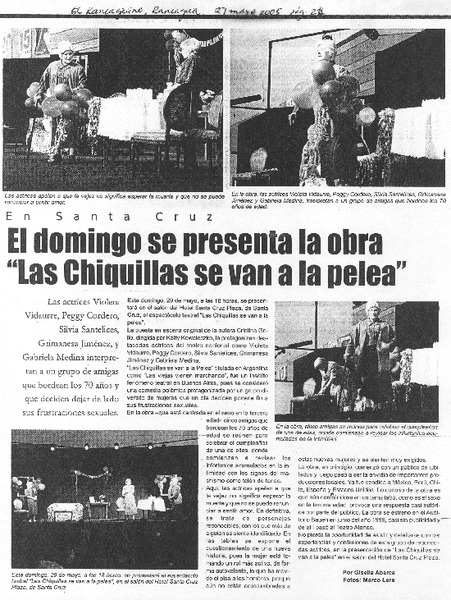 El domingo se presenta la obra "Las chiquillas se van a la pelea" [artículo] Gisella Abarca