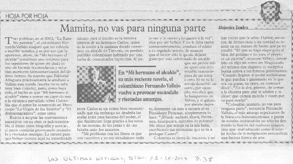 Mamita, no vas para ninguna parte [artículo] Alejandro Zambra.