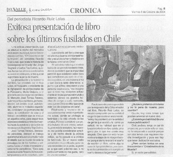 Exitosa presentación de libro sobre los últimos fusilados en Chile (entrevistas) [artículo]