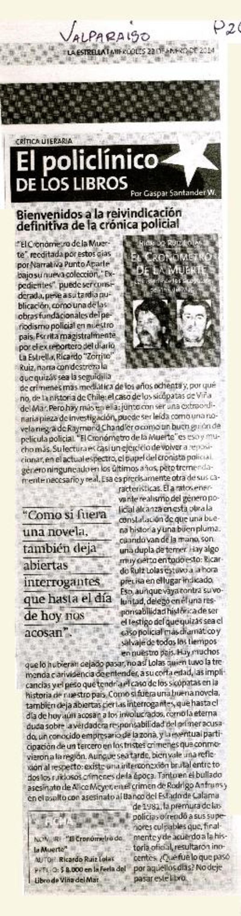 Bienvenidos a la reivindicación definitiva de la crónica policial [artículo] Gaspar Santander W.