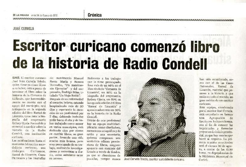 Escritor curicano comenzo libro de la histoaria de Radio Condell [artículo]