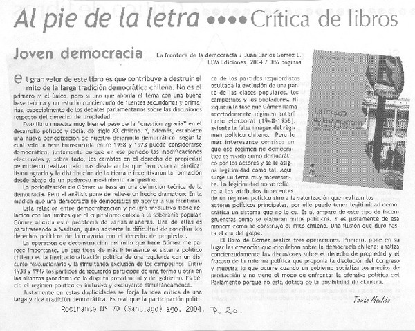 Joven democracia [artículo] Tomás Moulian