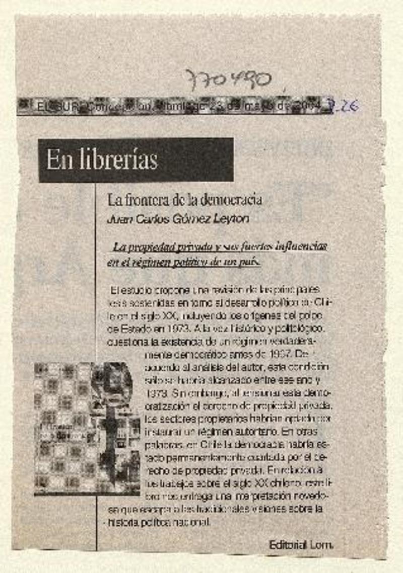 Autores chilenos - Frontera de la democracia - Gómez L, Juan Carlos