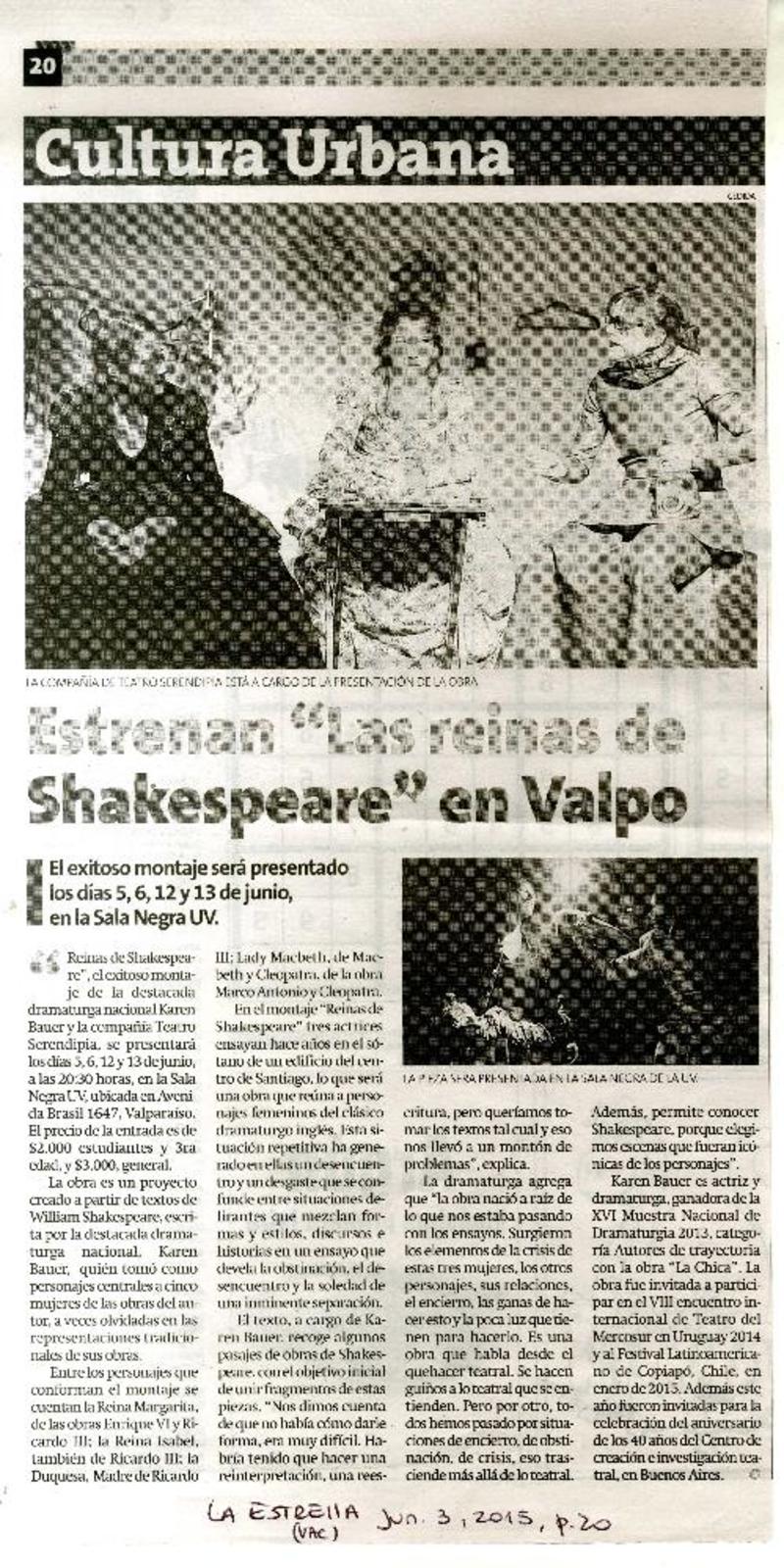 Estrenan "las reinas de Shakespeare" en Valpo. [artículo]