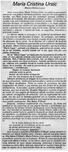 María Cristina Ursic [artículo] Marino Muñoz Lagos.