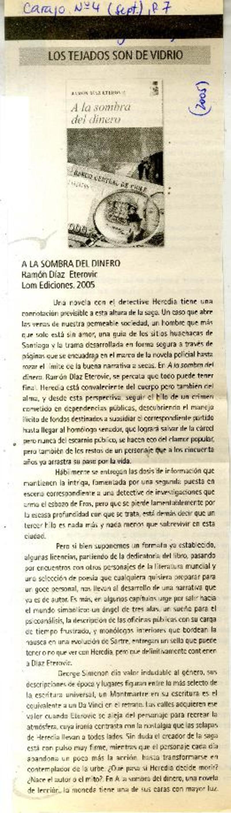 Autores chilenos - Díaz Eterovic, Ramón - A la sombra del dinero