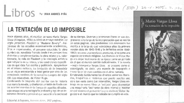 La Tentación de lo imposible [de] Mario Vargas Llosa [artículo] por Juan Andrés Piña.