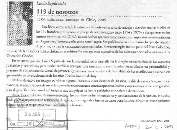 Autoras chilenas - Sepúlveda, Lucía - 119 de nosotros