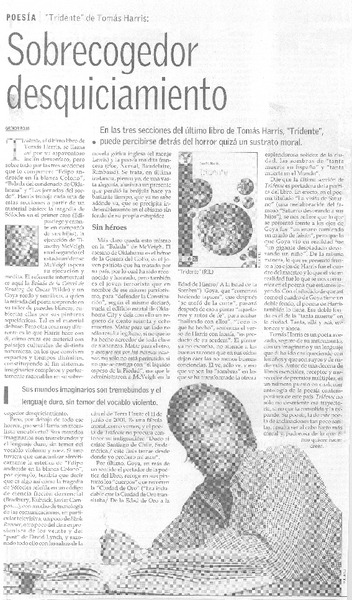 Tres miradas a "Tridente" de Tomás Harris [artículo] María Inés Zaldívar.