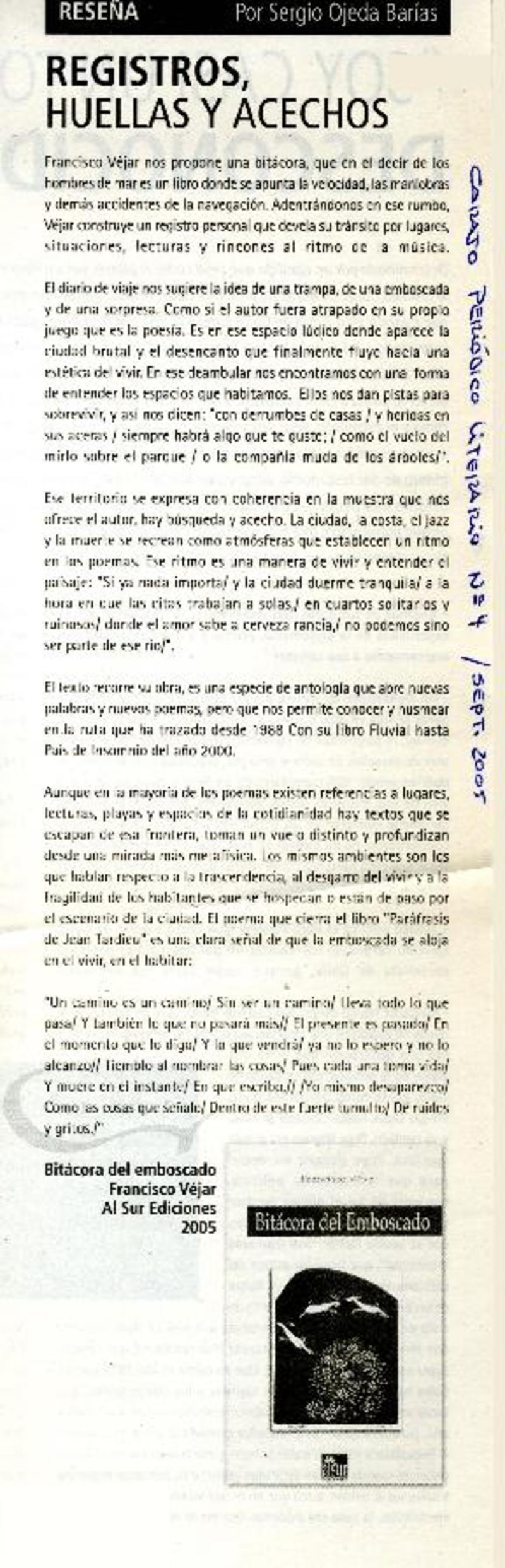 Registros, huellas y acechos [artículo] Sergio Ojeda Barías.