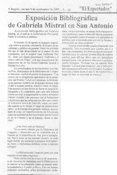 Exposición bibliográfica de Gabriela Mistral en San Antonio. [artículo]