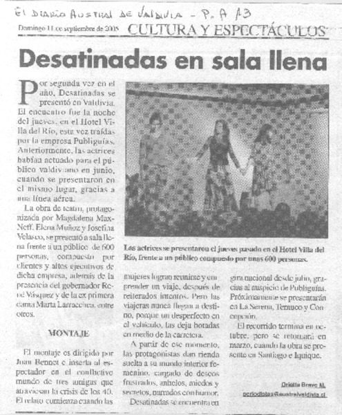 Desatinadas en sala llena. [artículo] Orietta Bravo M.