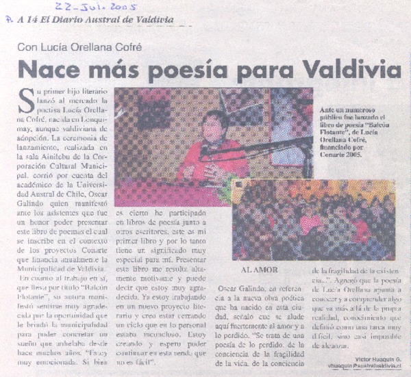 Joven da a conocer su poesía. [artículo] Víctor Huaquín G.