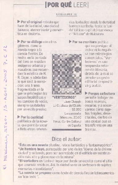 Entrevistas - Chapple, Juan - Autores chilenos - Vertederos