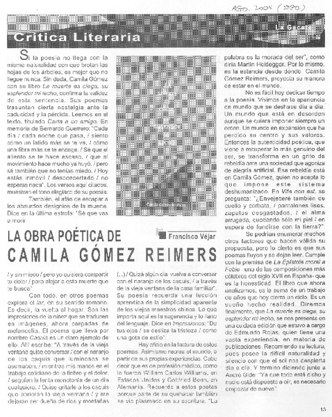 La obra poética de Camila Gómez Reimers [artículo] Francisco Véjar