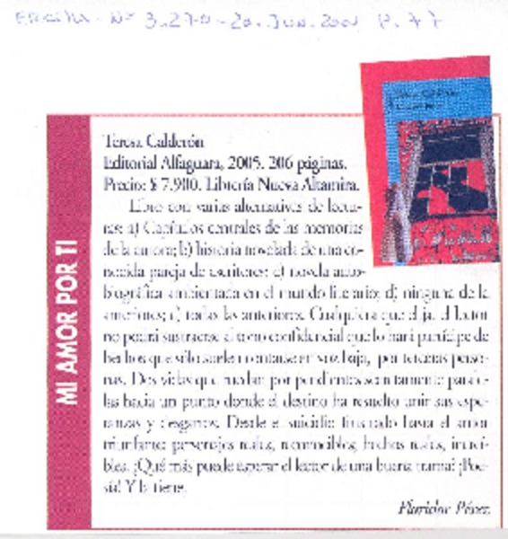 Teresa Calderón. Editorial Alfaguara, 2005. 206 p. [artículo] Floridor Pérez.