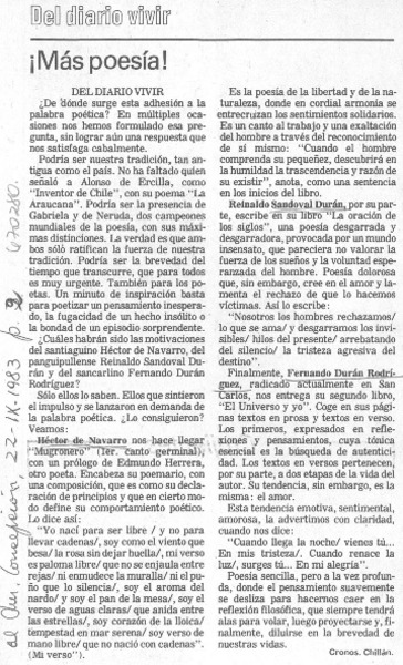 Autores chilenos - Sandoval Durán, Reinaldo - Durán Rodríguez, Fernando - Universo y yo - Navarro, Héctor - Mugronero - Oración de los siglos