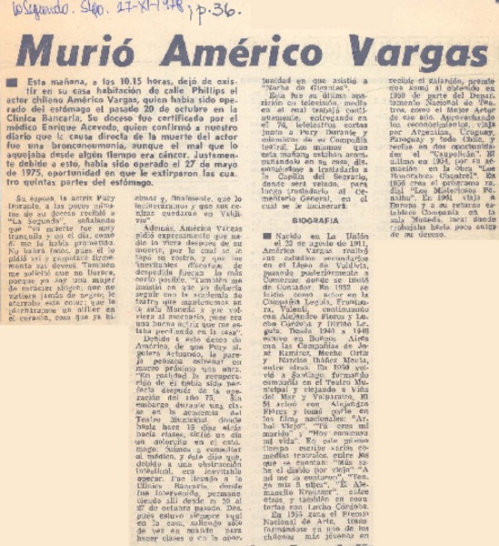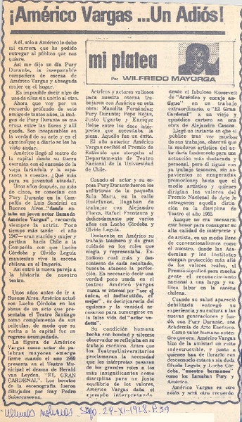 ¡Américo Vargas...Un adiós! [artículo] Wilfredo Mayorga.