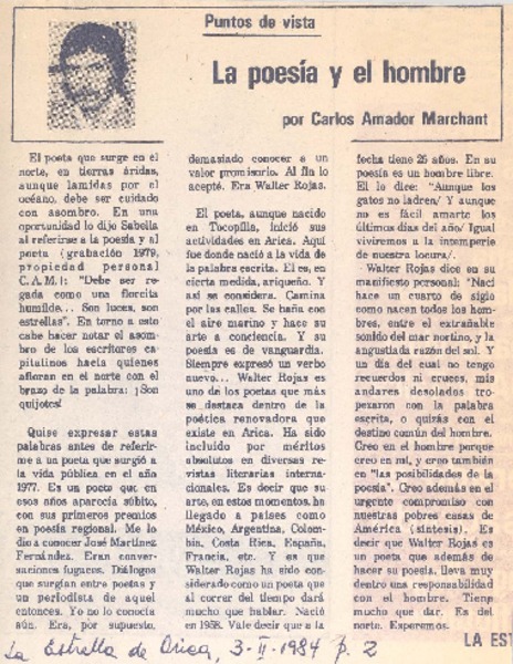 La poesía y el hombre [artículo] Carlos Amador Marchant.