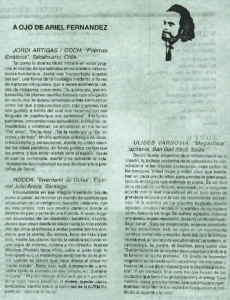 Autores chilenos - Artigas i Coch, Jordi - Poemas erráticos - Rodda - Invetario de gotas - Varsovia, Ulises - Megalítica