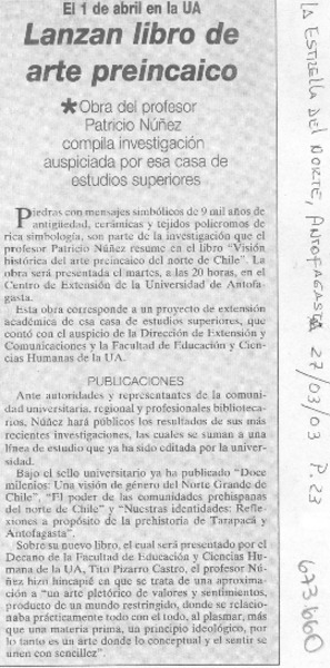 Núñez H., Patricio - Autores chilenos - Visión histórica del arte preincaino del norte de Chile