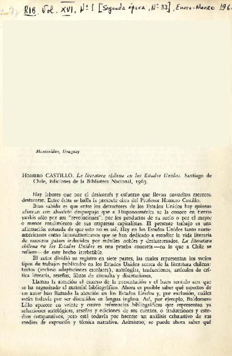 Literatura chilena en los Estados Unidos [artículo] Eduardo Neale-Silva.
