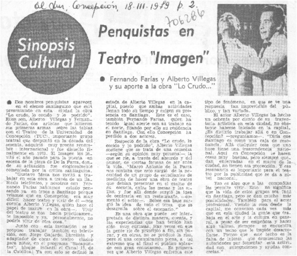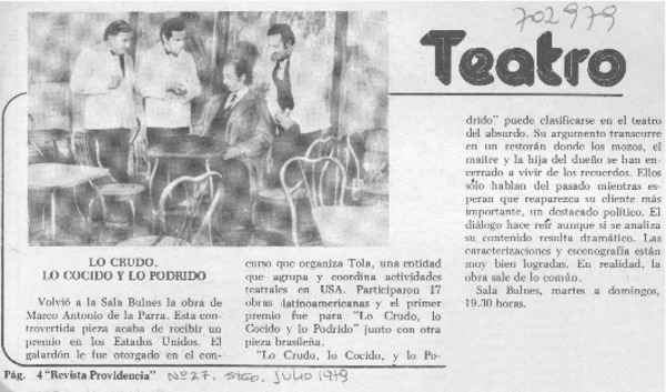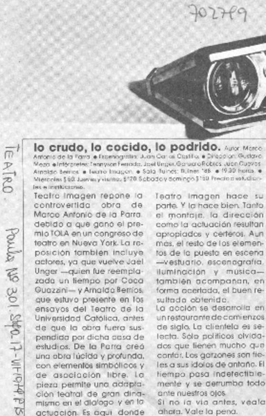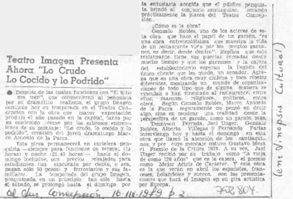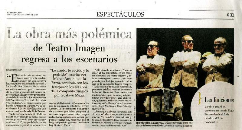 "Lo Crudo, lo cocido y lo podrido", éxito de Santiago ahora en el T. Concepción. [artículo]