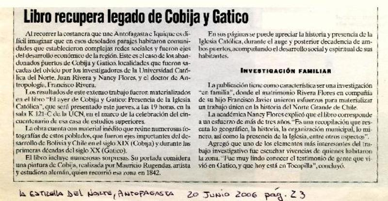 Autores chilenos - Flores, Nancy - Rivera, Francisco - Rivera, Juan - Ayer de Cobija y Gatico: Presencia de la Iglesia Católica